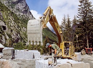 Serizzo scuro e ghiandone sono estratti nelle cave in proprio in Valmasino.